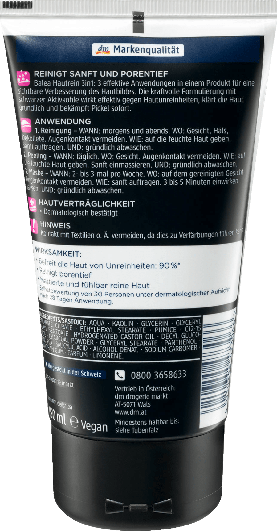 Balea Hautrein 3in1 offre 3 applications efficaces dans un seul produit - pour une amélioration visible de l'apparence de la peau. La formule puissante au charbon actif noir agit efficacement contre les imperfections, nettoie la peau en profondeur et combat immédiatement les boutons.